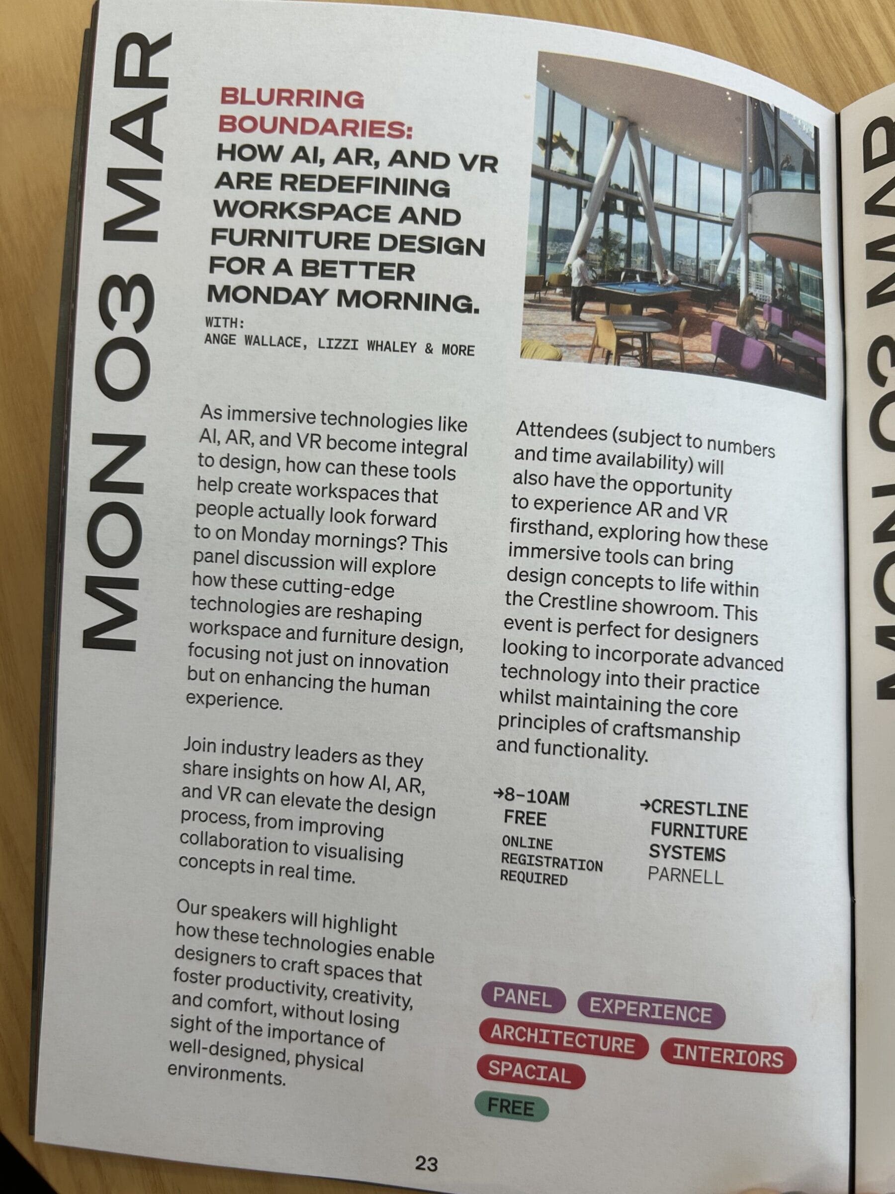 Auckland Design Week 2025 showcased the future of workspaces, and we at Spaceworks were thrilled to be a part of it. Did you ever look forward to a Monday? At this year’s event, we explored how AI, AR, and VR are transforming offices into places people genuinely want to be. I joined a panel of industry leaders to discuss how these technologies, under the ‘Chance + Change’ theme, are redefining workplace design.