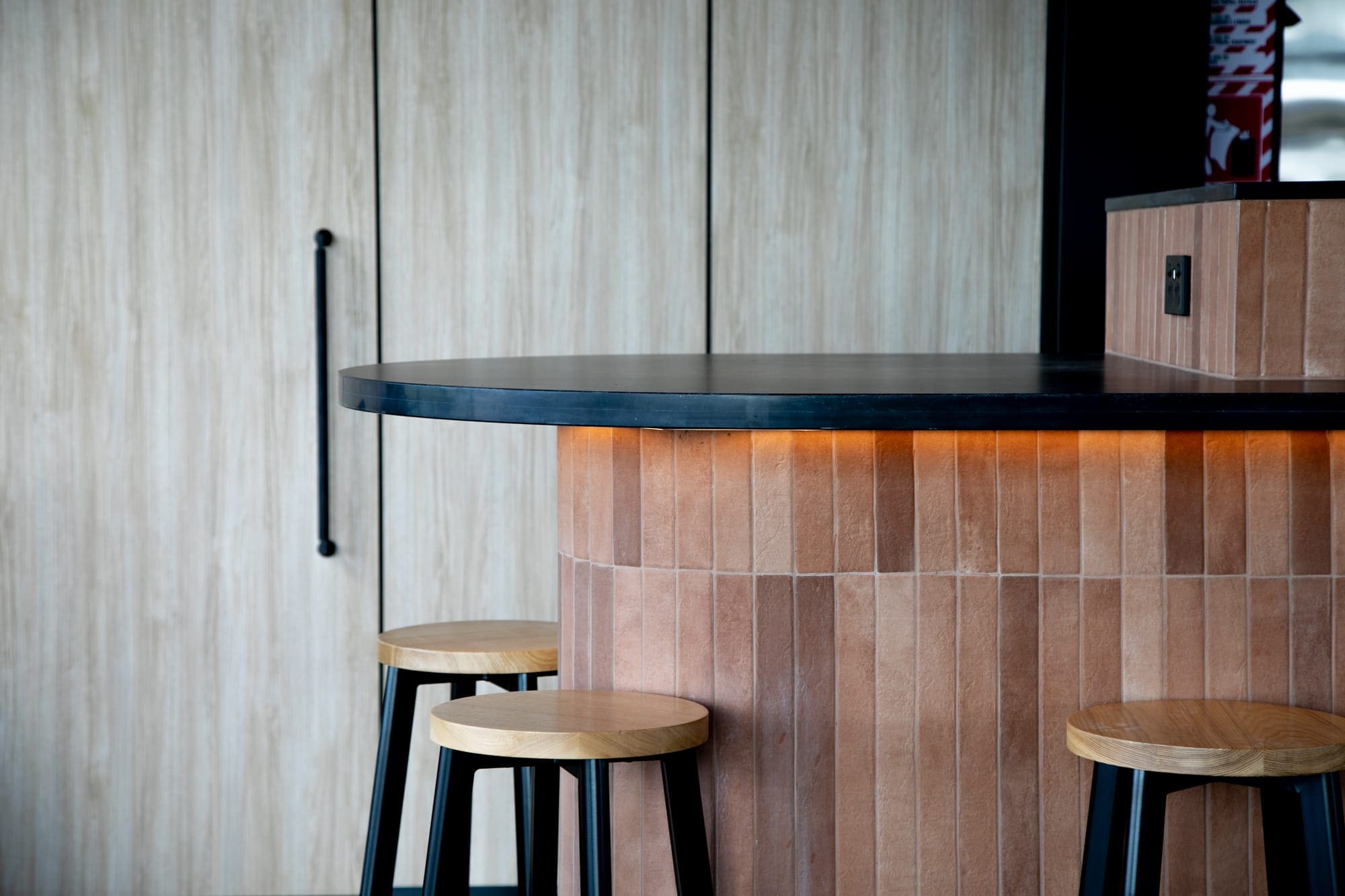As the interior architects, one of Spaceworks’ significant challenges was to craft a restaurant and café within a limited space. Our solution lay in the creation of feature counters, seamlessly integrated into the layout, thus optimising storage without encroaching upon the general space. Feature shelving was used as a clever solution, adding storage space despite the size constraints. A suspended cupboard, serving as a dry store on one side and a display cupboard on the other, showcases Spacework’s ability to adapt to space limitations creatively.
