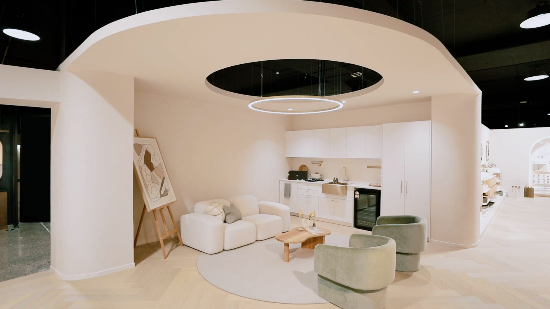 Key Design Focus: A showroom that feels lived-in, inviting, and adaptable to multiple functions beyond product display.