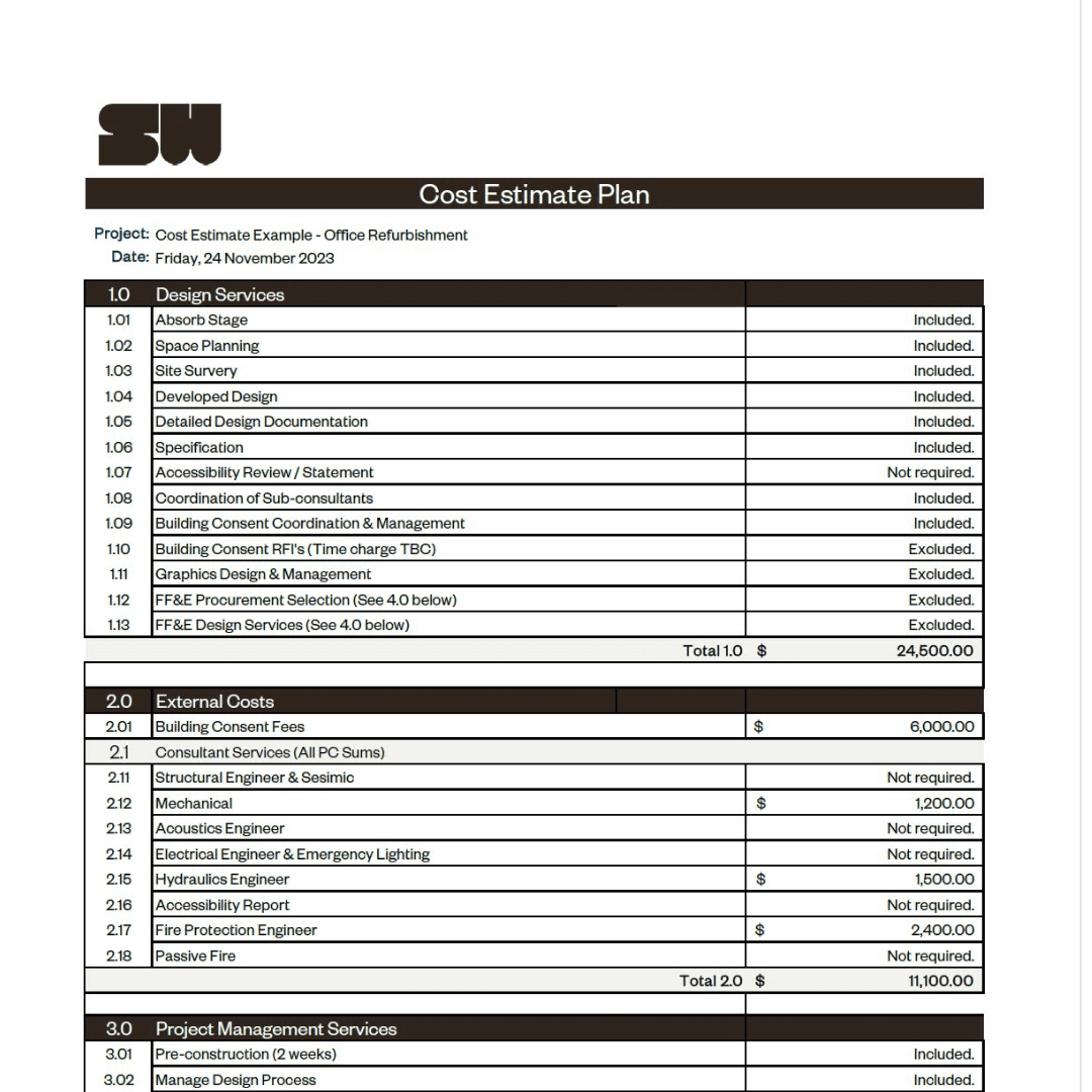 This detailed timeline outlines each phase of the project, from initial design to final construction, highlighting key milestones and deadlines. Such transparency allows clients to negotiate favourable lease terms, including rent-free periods and to potentially allocate certain costs to the landlord.