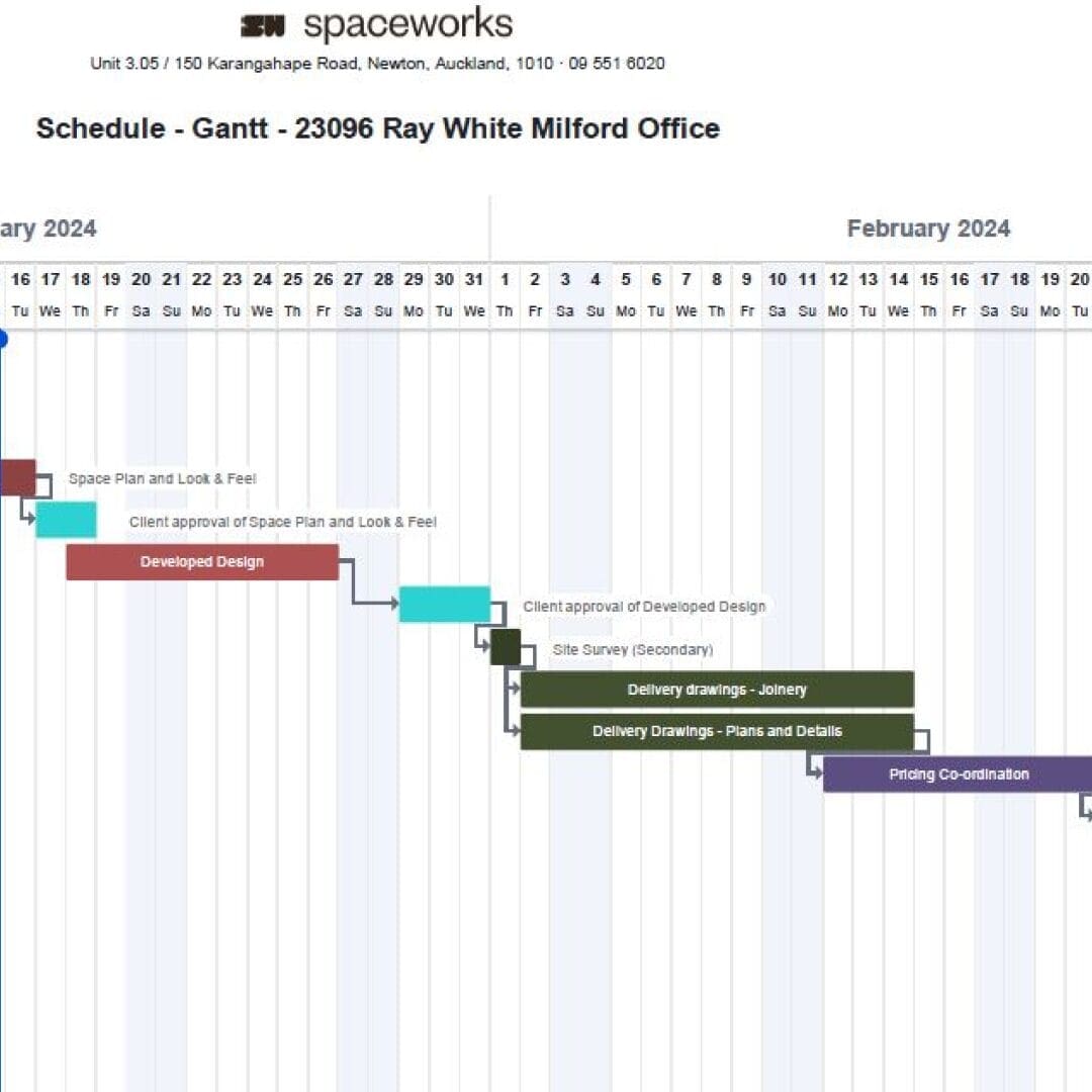 This process involves giving direction on materials, colours, and furnishings that reflect the intended Ray White ambiance and functionality of the space. By evaluating these elements early on, Spaceworks project manager can identify cost-effective alternatives that maintain the desired aesthetic, thus preventing costly changes later in the project effecting timeframes.